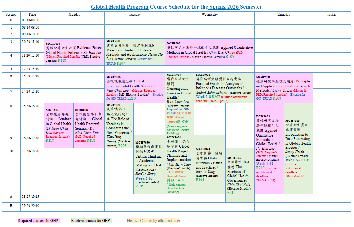 <GHP Courses Schedule for the Spring 2026 Semester>